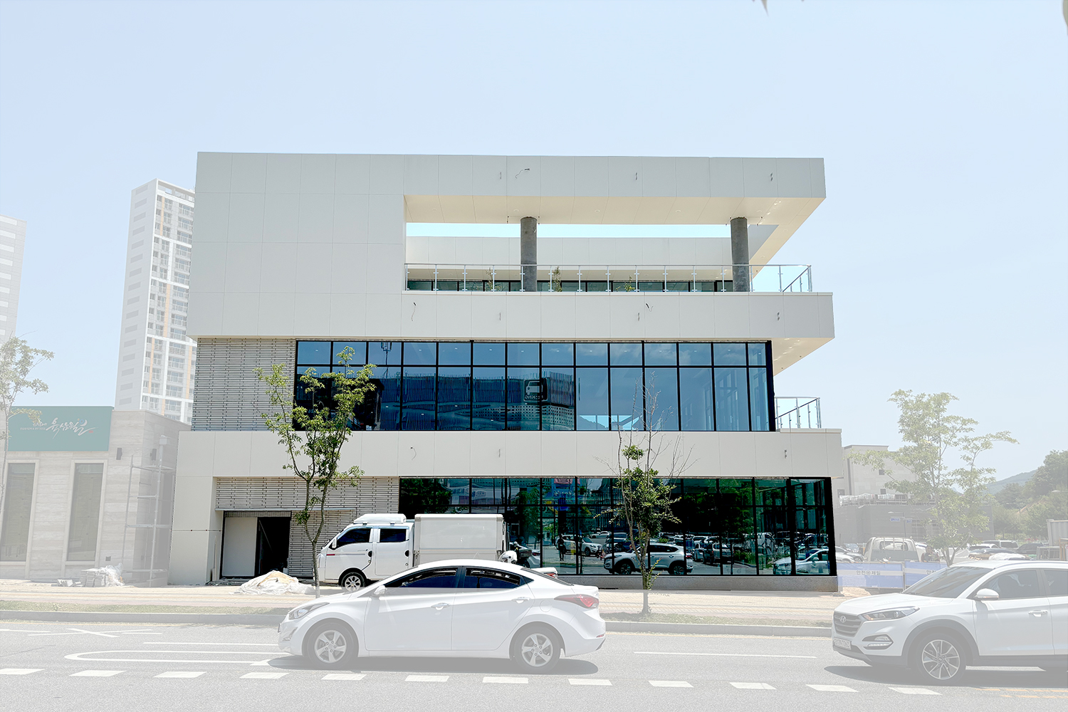 트러스 구조체를 형성 후 외장 마감재를 시공합니다. 외장 마감재 시공까지 가능한 NWS 무용접시공입니다.
