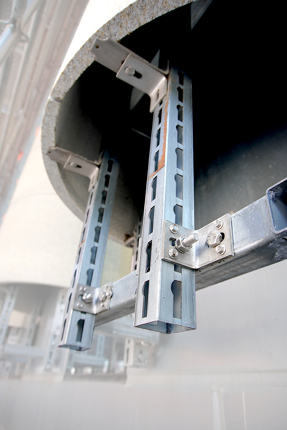 자재 입고 > UNIT 체결 , 앙카 작업 > UNIT 사이 세로 연결대 체결 > 시공 완료